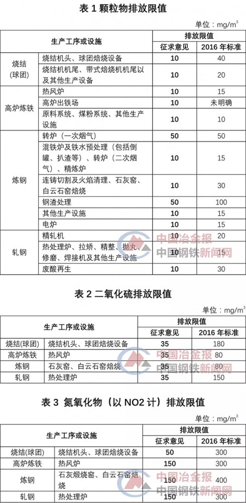 近日,河北省環(huán)保廳發(fā)函征求《鋼鐵工業(yè)大氣污染物超低排放標(biāo)準(zhǔn)》等五項地方環(huán)保標(biāo)準(zhǔn)意見,根據(jù)公示的《鋼鐵工業(yè)大氣污染物超低排放標(biāo)準(zhǔn)》(征求意見稿),河北省擬在2016年公布的排放標(biāo)準(zhǔn)(以下簡稱“2016年標(biāo)準(zhǔn)”,即當(dāng)前河北省鋼鐵企業(yè)執(zhí)行的標(biāo)準(zhǔn))基礎(chǔ)上,調(diào)整了燒結(jié)(球團(tuán))、高爐煉鐵、煉鋼和軋鋼工序顆粒物、二氧化硫、氮氧化物大氣污染物排放濃度限值。具體要求如下——